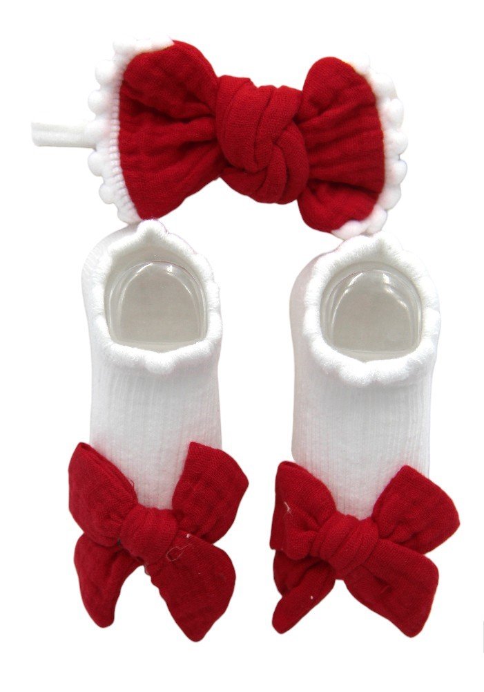 Design: Features a cute ribbon bow detail on both the socks and the headband, adding a playful yet sophisticated touch.